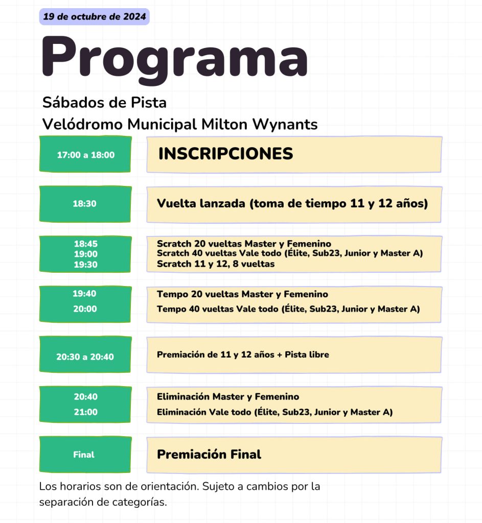 Mientras tanto, los entrenamientos controlados que organiza todos los sábados Héctor Scayola y su grupo tendrán cambios para mañana, contemplando justamente la actividad nocturna en el velódromo.