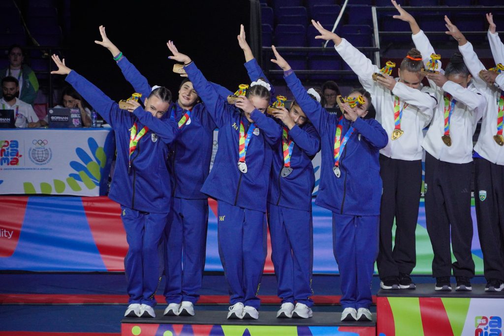 Las celestes, dirigidas por Luciana Rodríguez y Eliana Esposito, terminaron detrás de Brasil y por delante de Argentina, tras una sólida actuación en la Arena Roberto Durán. Sumaron 47.950 en salto, 43.775 en barras asimétricas, 46.325 en viga y 44.425 en suelo.