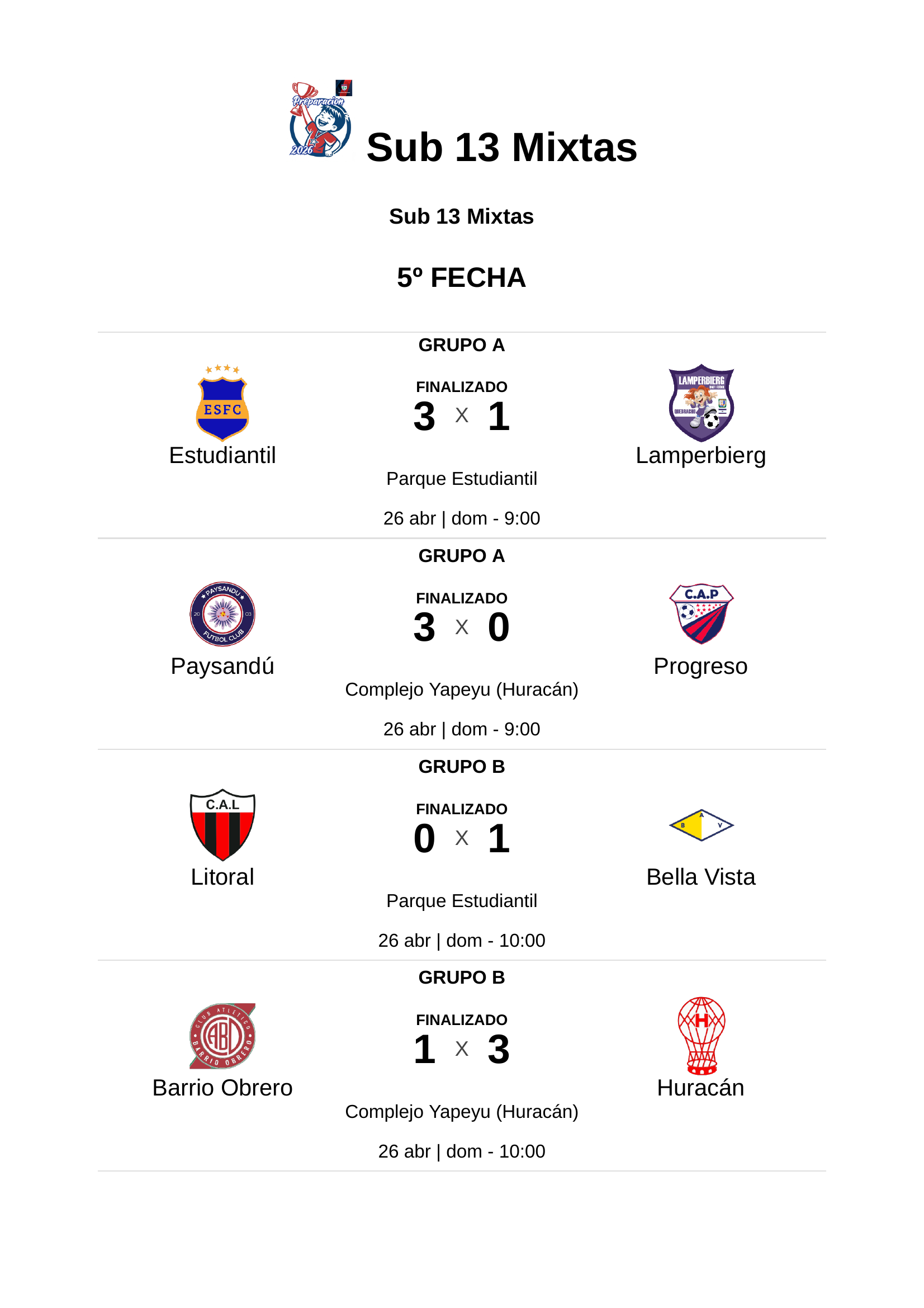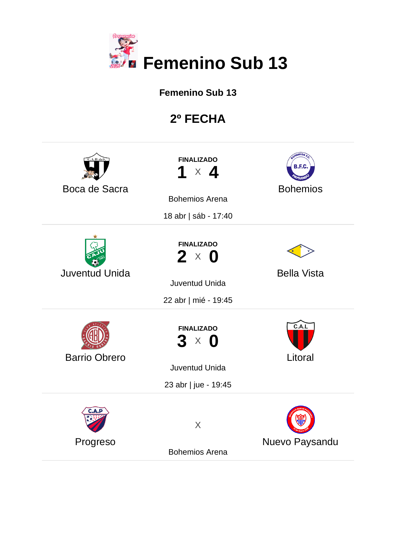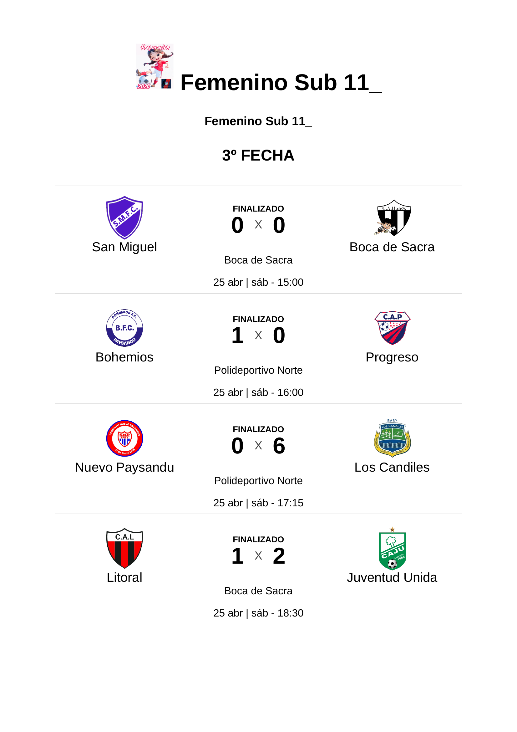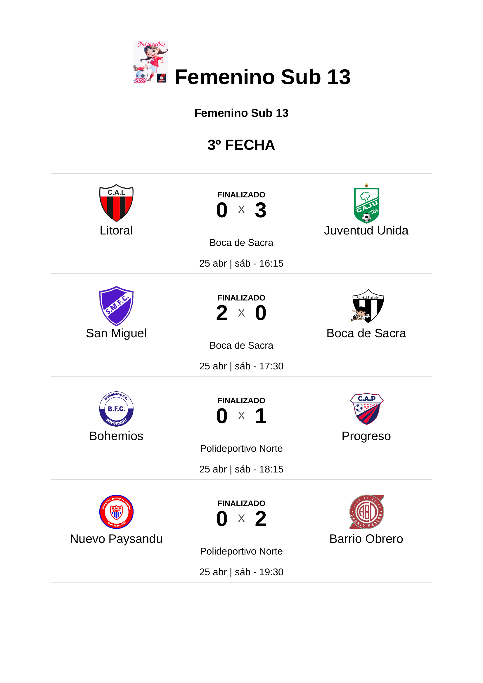 En tanto, vale señalar que se jugaron dos fechas del femenino, dado que hubo competencia no solo el finde semana sino entre semana, al igual que se jugaron tres partidos en Sub 13 mixto.