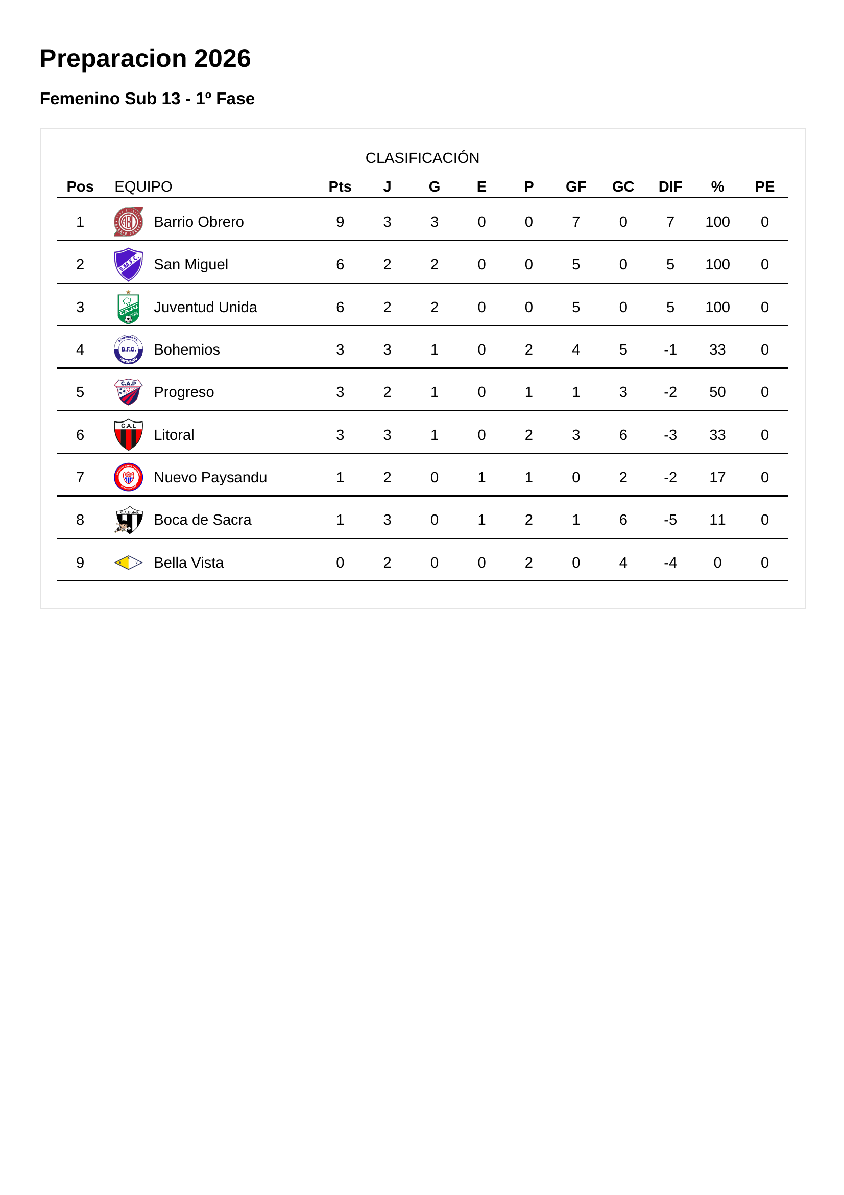 El Preparación ya va dejando cosas en claro, a medida que avanza la actividad. Por lo pronto, clasificaron a semis Bohemios y Huracán en Sub 13 mixta por el Grupo B, a la espera de lo que suceda con la otra serie para definir rivales. El Grupo A jugará el domingo, en Quebracho, su última fecha de la fase regular: Independencia – Progreso, Paysandú FC – Boca de Sacra y Lamperbierg – Juventud.