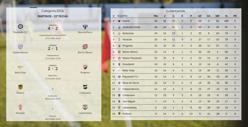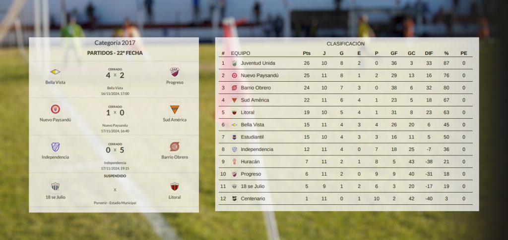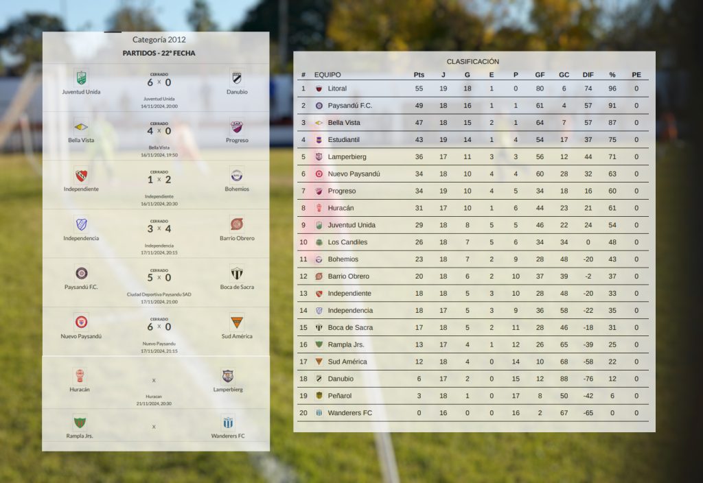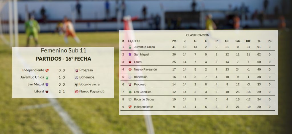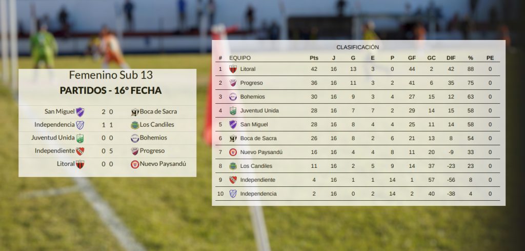 En Sub 13 comenzó la Supercopa a jugarse a tres fechas; en Sub 13 femenino Litoral apronta el grito de campeón ya que en la próxima fecha le alcanzará con un empate aunque jugará de visitante ante Progreso, segundo; Juventud Unida campeón invicto en Sub 11 femenino; y en la 2012 Litoral se coronó campeón del Honor de manera invicta.