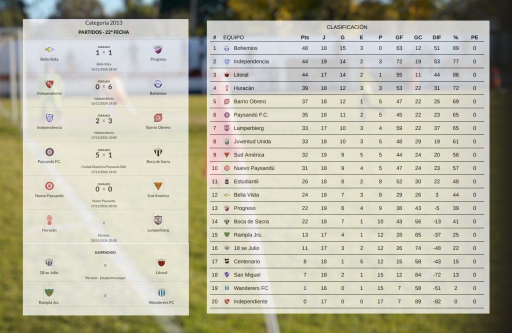 La temporada de la Liga Sanducera de Fútbol Infantil ingresa en etapa de definiciones, y las emociones se viven en cada partido.