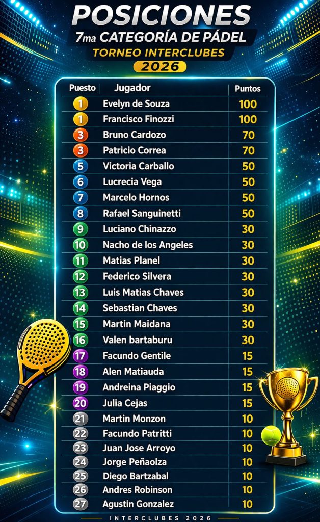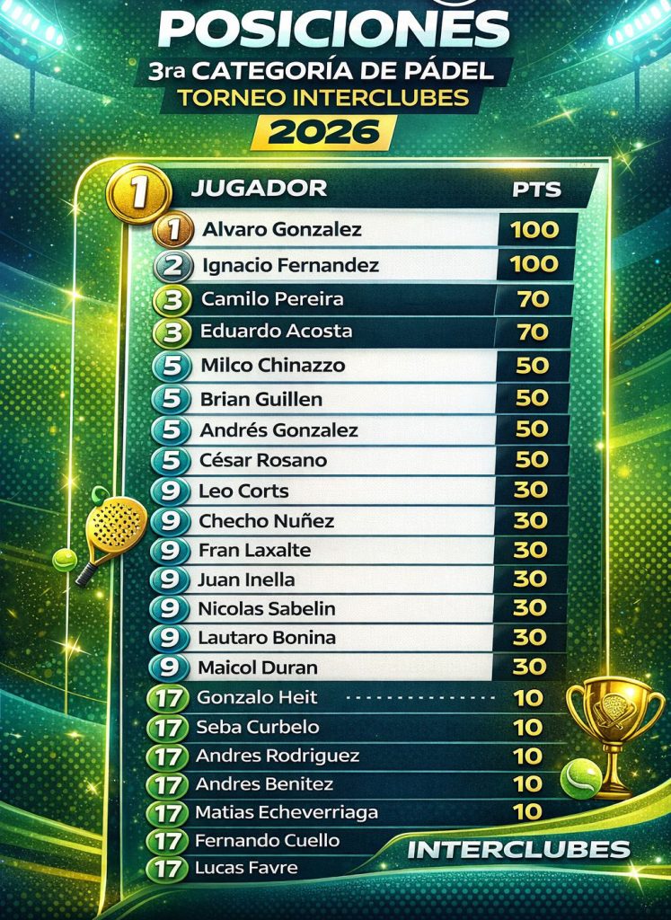 Ahora, con el envión de un arranque más que sólido, la competencia ya pone segunda. Están abiertas las inscripciones para la próxima etapa, que se jugará del 15 al 19 de abril y volverá a poner puntos en juego para un ranking que empezó a moverse desde temprano.
