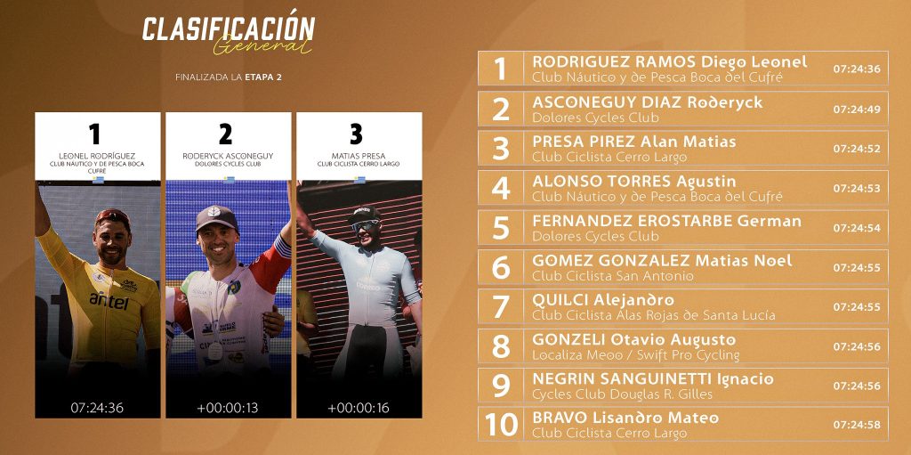 Con estos resultados, Rodríguez es el líder de la clasificación general, seguido por Asconeguy y Matías Presa (CC Cerro Largo).
