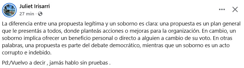 En los últimos días, Irisarri también agitó el avispero en redes sociales, denunciando prácticas que, según afirma, se están dando en plena campaña.