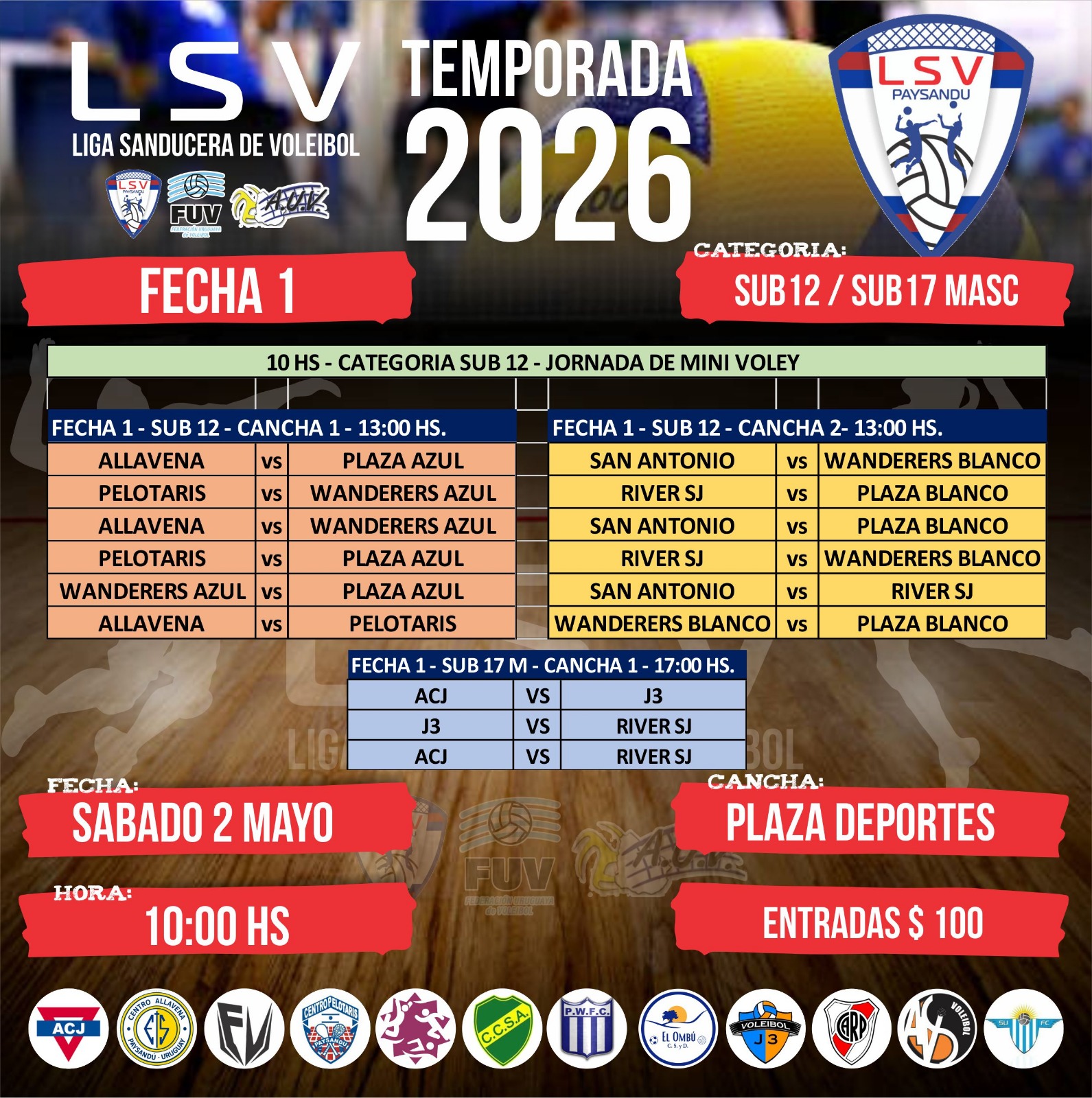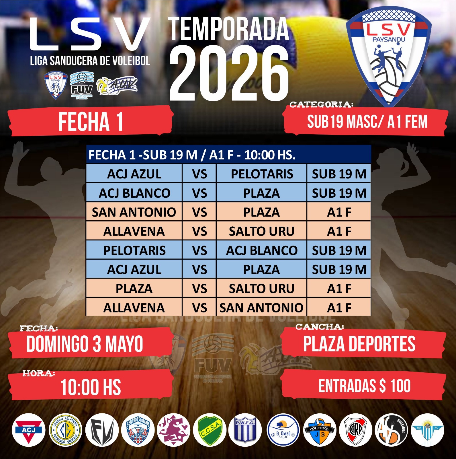 En cancha de Allavena comenzó a rodar la temporada 2026 de la Liga Sanducera de Vóleibol, que tuvo su puntapié inicial el pasado fin de semana y ya dejó planteado el cronograma de lo que se vendrá en los próximos días.