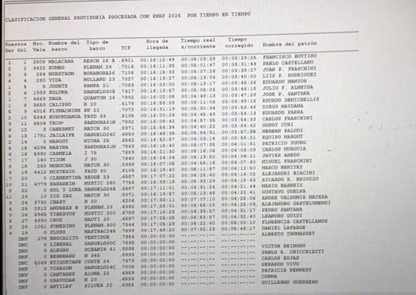 Pero como manda la vela, la clasificación se define por tiempo corregido. Y ahí el mejor fue Malacara, que se quedó con la etapa, seguido por Rumbo, Norstrom y Vida.