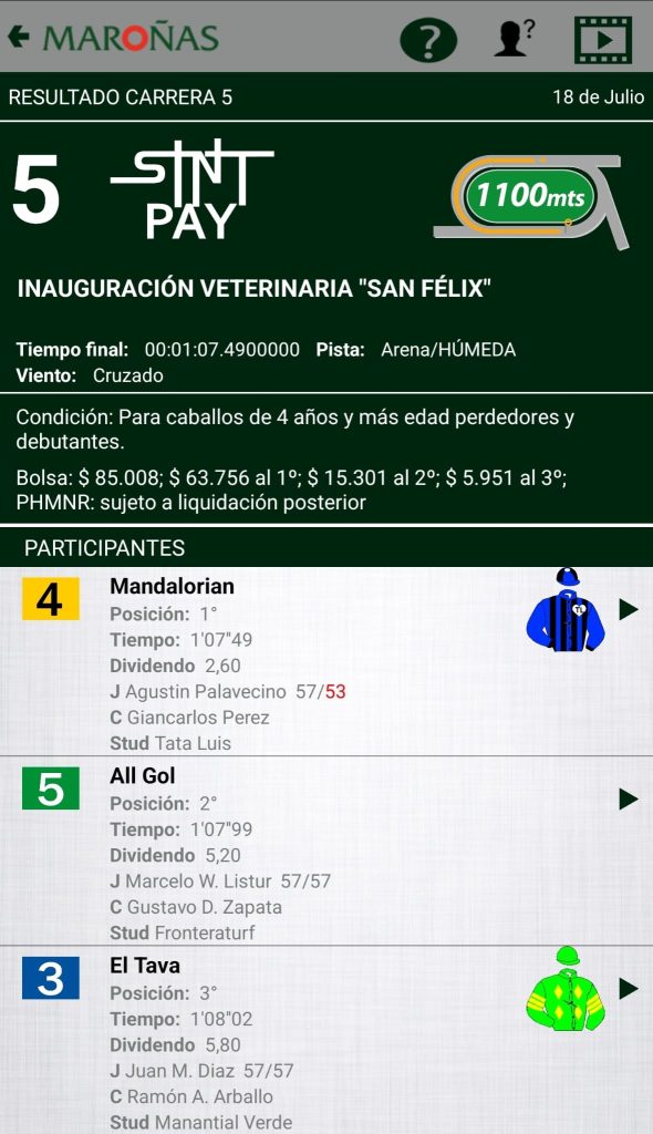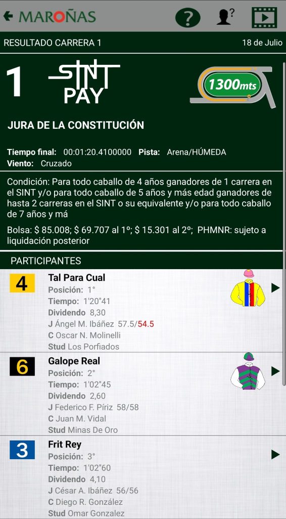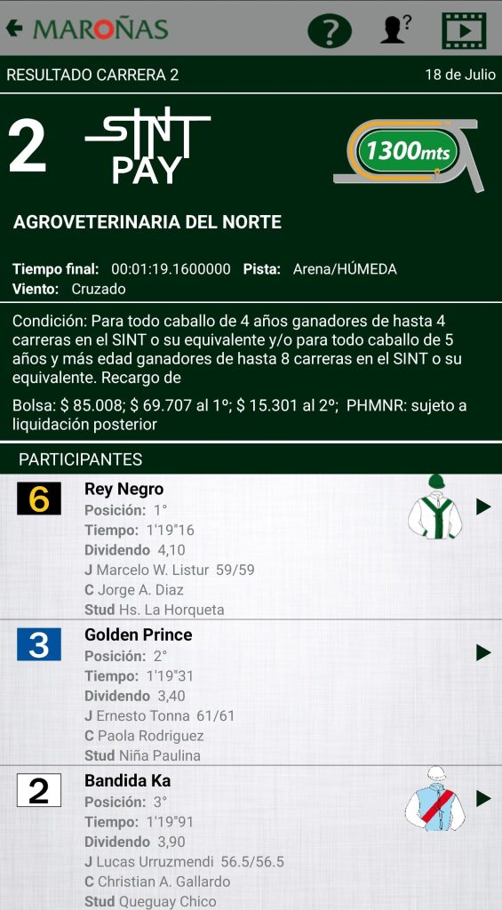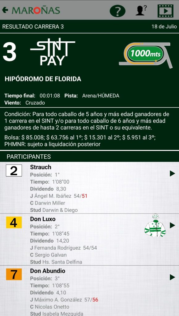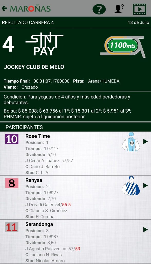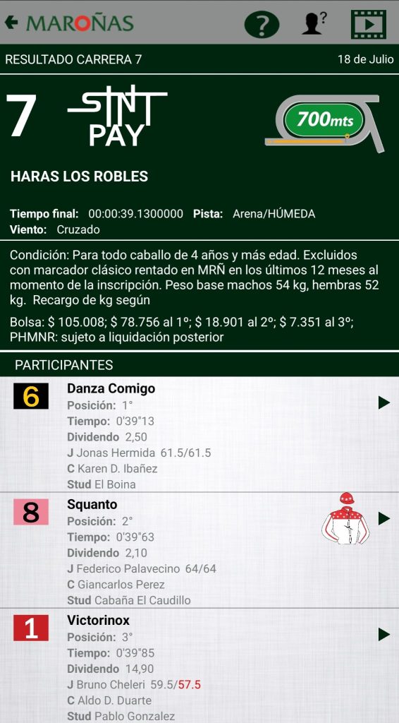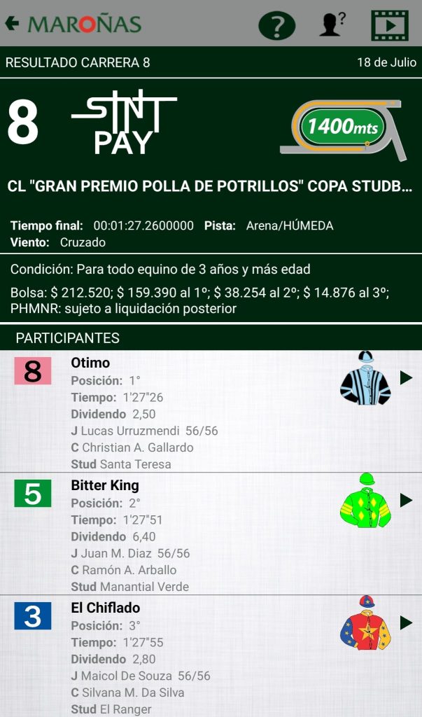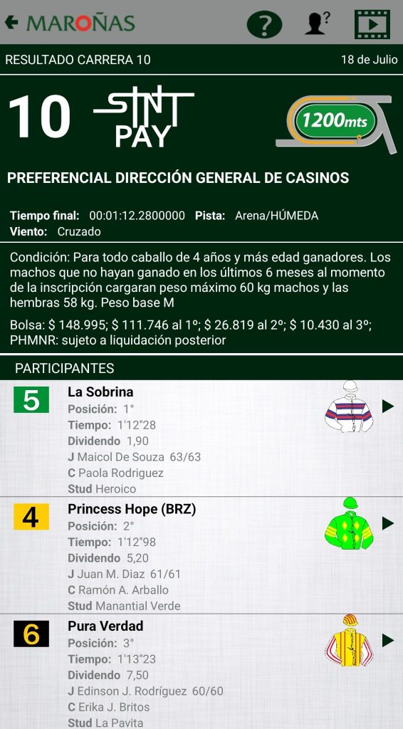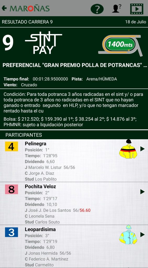 El Preferencial Gran Premio Polla de Potrancas fue para Pelinegra, con la monta de Marcelo Listur, con un tiempo de 1’28’’95 en los 1.400 metros. En tanto, el Preferencial Dirección General de Casinos, que se corrió como cierre de la jornada sobre 1.200 metros con la participación de caballos de cuatro años y más edad ganadores, tuvo como ganadora a La Sobrina, con la guía en pista de Maicol De Souza, con un tiempo de 1’12’’28.