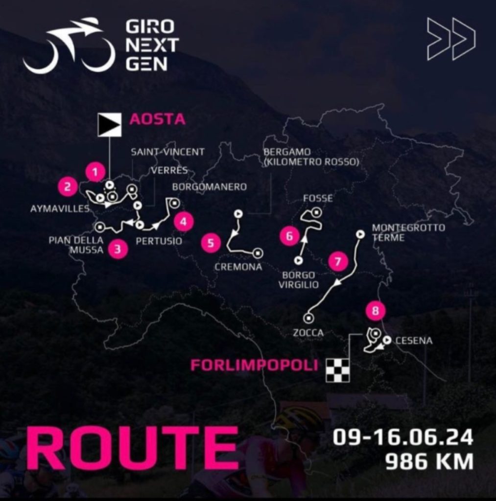 La competencia, organizada por la RCS Sport junto a la Federación Italiana de Ciclismo, se pondrá en marcha en el Valle de Aosta con una contrarreloj individual de 8.8 kilómetros que terminará en Forlimpopoli, en el que será de la partida lo mejor del ciclismo del mundo en esta categoría.