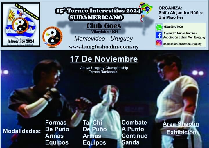 El domingo se vivirá en el capitalino Club Goes la disputa de la 15ª edición del Sudamericano Interestilos, que contará con la participación de una nutrida delegación sanducera, perteneciente a la academia Sipalki Dan Bong Kwan que dirige Mario Rivero, 6º DAN.
