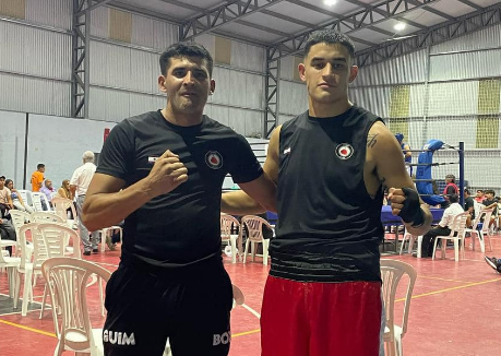 López junto a Camissa, uno de los púgiles que combate hoy en Maldonado