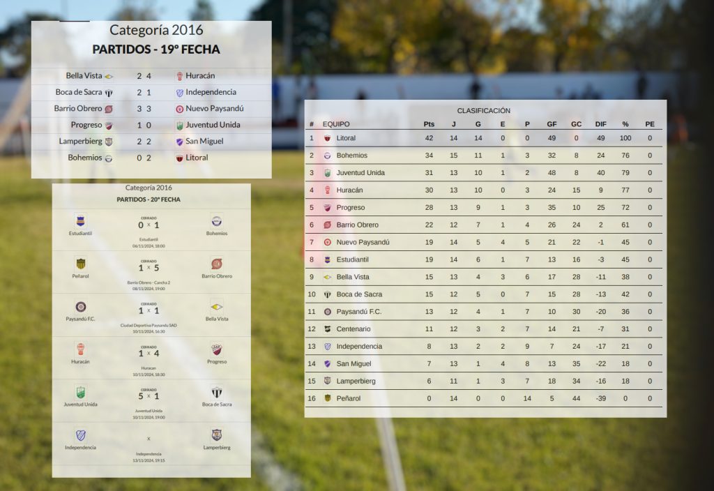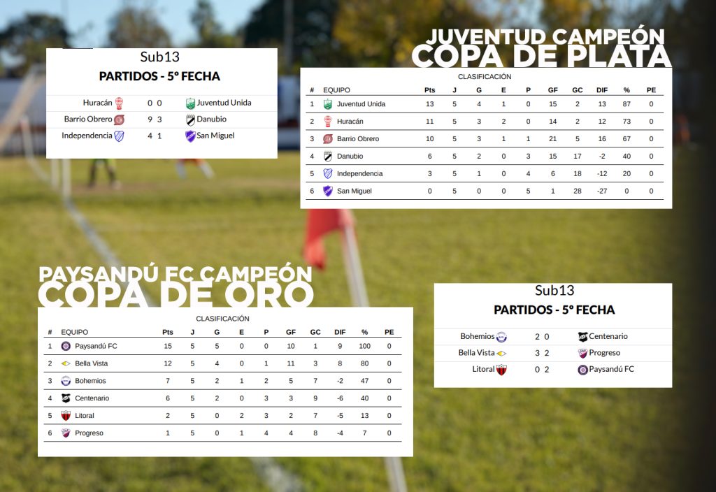 La Liga Sanducera de Fútbol Infantil sigue con su Campeonato de Honor, y ya se van conociendo algunos campeones. En Sub 13 se definieron las Copas de Oro y Plata, que tuvieron como respectivos campeones a Paysandú FC y a Juventud Unida, mientras que fueron vices Bella Vista y Huracán.